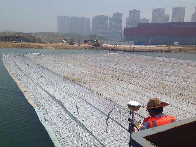 鋪設土工布軟體排時的技術要求,首先,向前推進導堤時,一定要提前使用土工布軟體排護底。其次,鋪設軟體的時候,為避免產生沖溝,要盡量的單向推進。再者,為確保導堤符合沖刷規(guī)定,要確保其寬度符合規(guī)定。最后,做好已鋪設完成的余排項目的監(jiān)測活動。