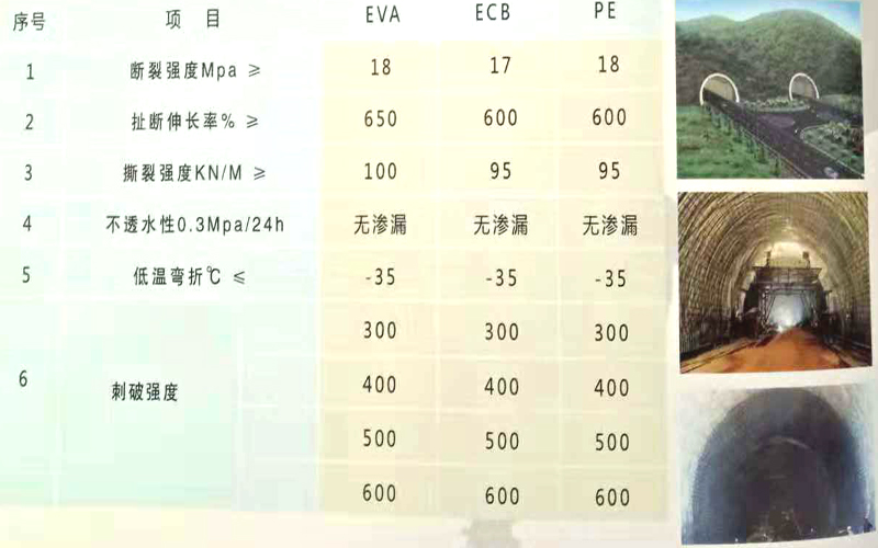 防水板又叫土工膜,習慣上把>=0.8mm厚的土工膜叫防水板,<0.8mm的叫土工膜,它是以高分子聚合物為基本原料制成的一種防滲材料,分為均質(zhì)防水板和復合防水板。吊掛式隧道專用防水板是我公司開發(fā)創(chuàng)新的新型隧道專用防水材料,實現(xiàn)無穿通釘施工懸吊排一次完成,可大大簡化傳統(tǒng)防水材料在隧道中的施工難度,提高鋪設質(zhì)量和鋪設效率,縮短工期,大幅降低工程綜合造價,具有極強的市場競爭優(yōu)勢。